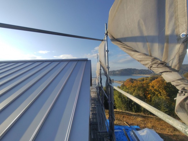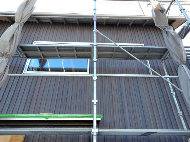 粛々と工事がすすめられており、杉板張りも終わりが近づき、
