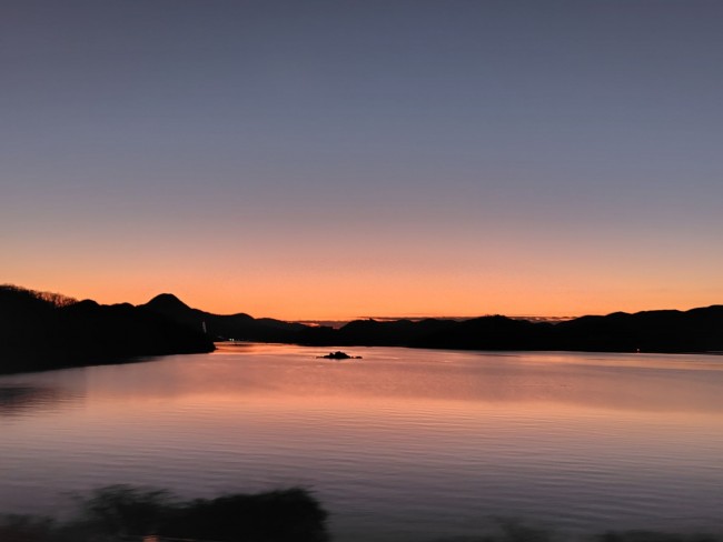 帰り道は見事な夕景の中を…。